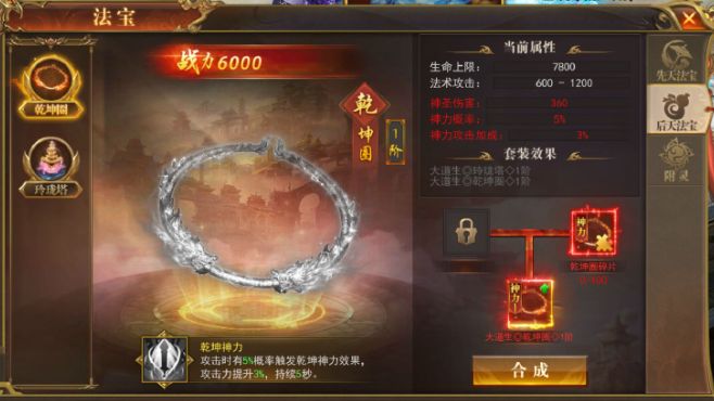 乾坤圈:攻击时有概率触发乾坤神力效果,攻击力大幅提升
