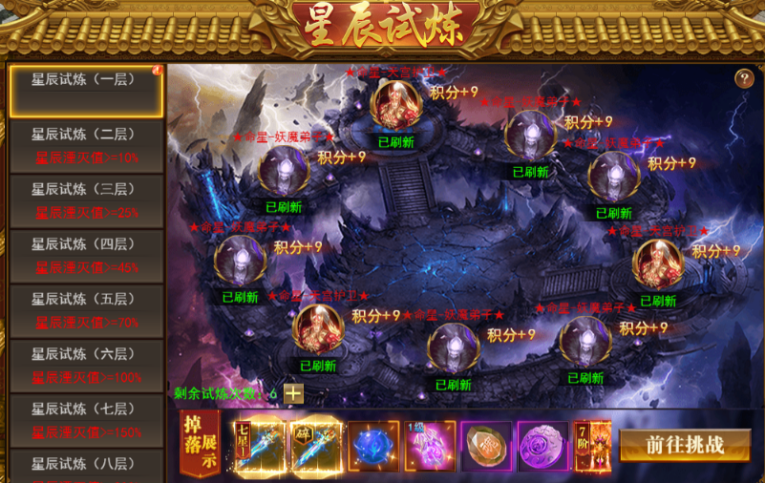 钻石购买和星辰试炼卷获得的挑战次数将于每周一0点重置,请及时使用!