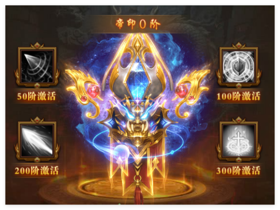 消耗帝印精华(可通过域外战场、域外征战、剑神传功获取)可升阶帝印,提升帝印至指定阶级可激活技能效果: